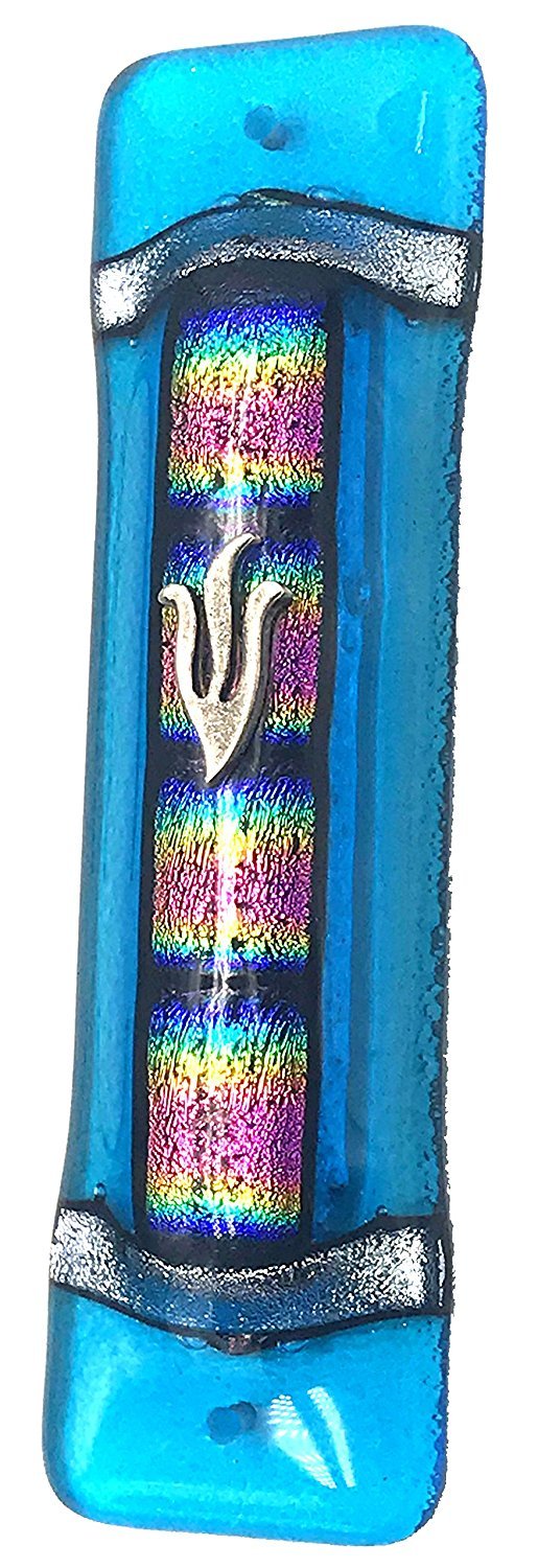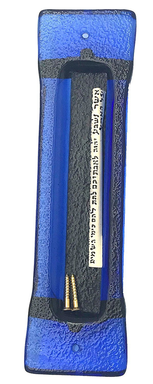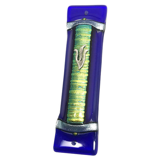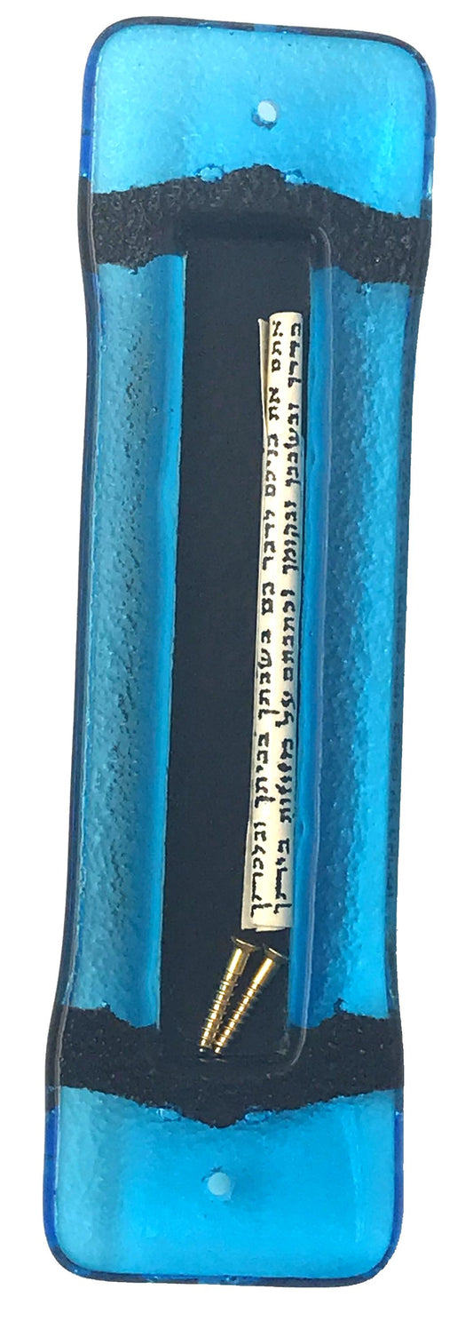 Sparkling Blue Art Glass on Metal Mezuzah