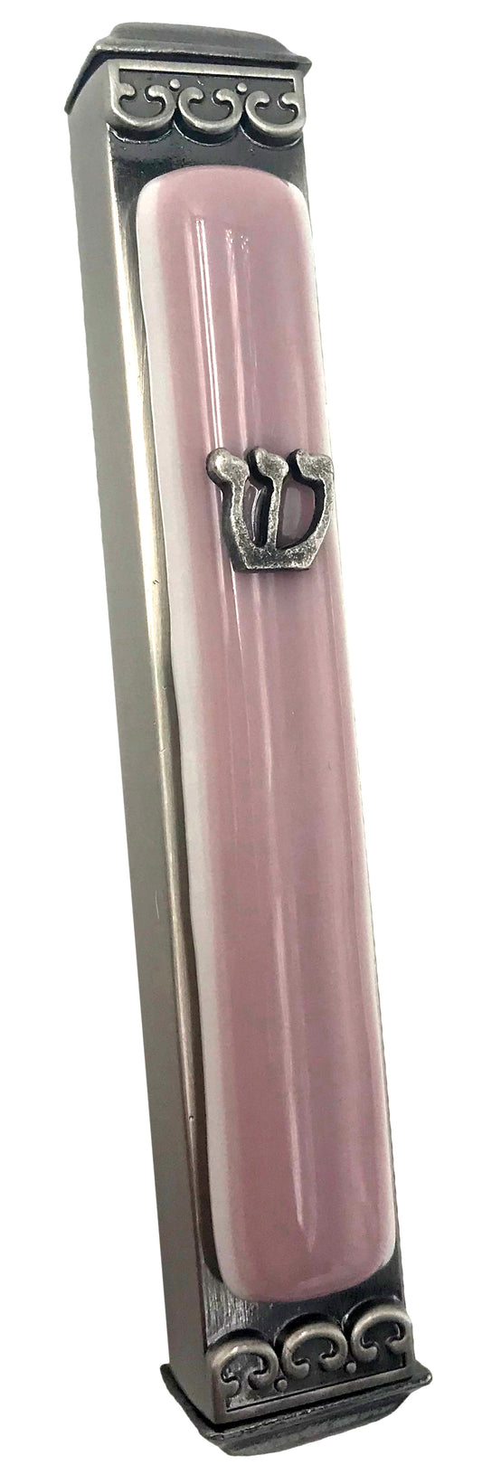 Mauve on White - Glass on Metal Mezuzah