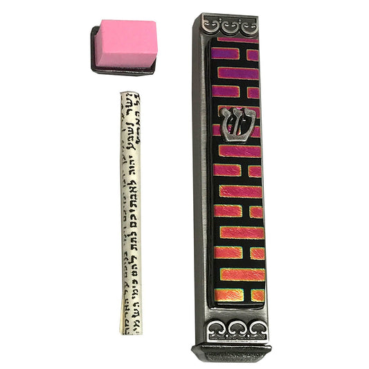 Sparkling Black Art Glass on Metal Mezuzah