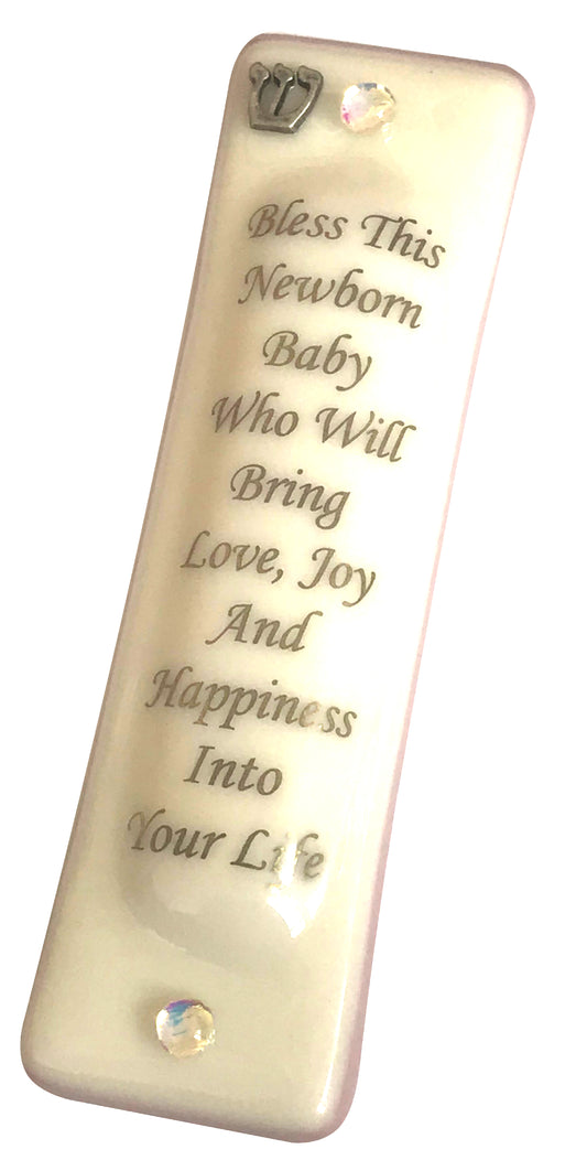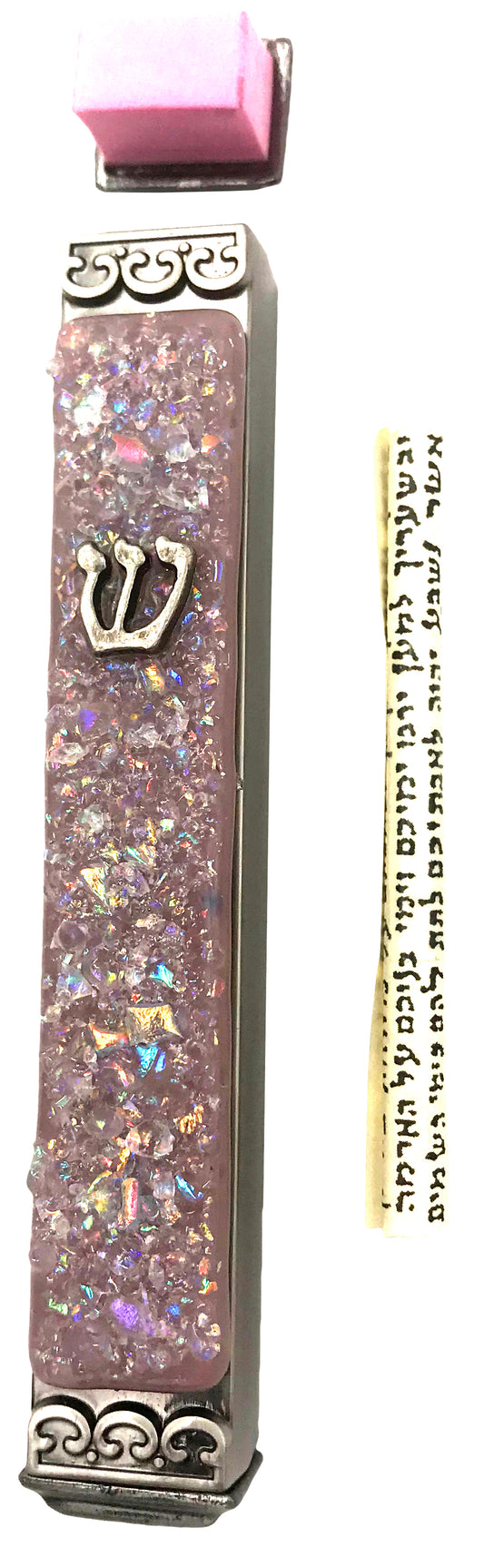 Sparkling Mauve Art Glass on Metal Mezuzah