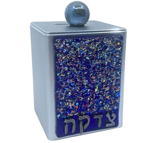 Shimmering Blue Crushed Jewels Tzedakah Box