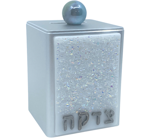 Shimmering White Crushed Jewels Tzedakah Box