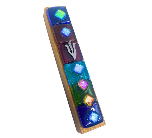 Twelve Tribes Glass on Teak Mezuzah